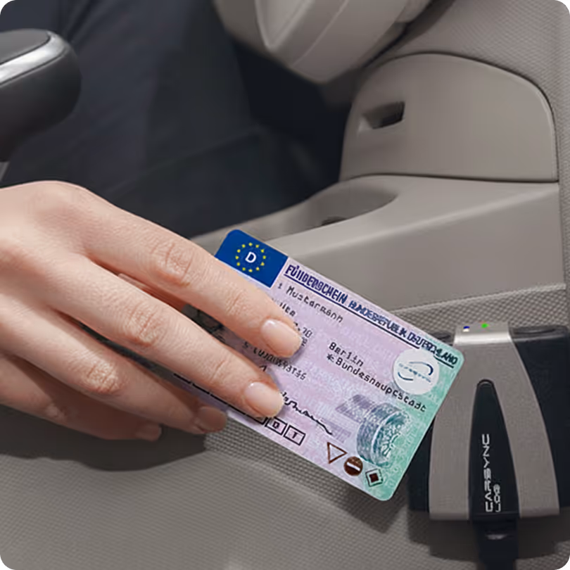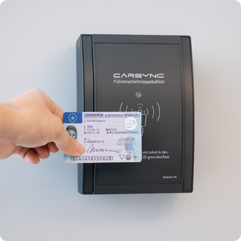 Die digitale Führerscheinkontrolle von CARSYNC basiert auf einem kleinen RFID-Label, das sicher am Führerschein angebracht wird. Damit können FahrerInnen ihre Kontrollen zuverlässig über verschiedene Prüfmethoden durchführen – flexibel, manipulationssicher und in jede Fuhrparkstruktur integrierbar.
